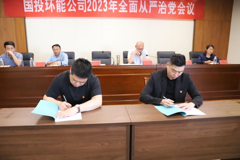 會(huì)上,國(guó)投環(huán)能公司黨總支書(shū)記同黨總支委員代表、直屬黨組織書(shū)記代表、部室負(fù)責(zé)人代表分別簽訂了2023年度全面從嚴(yán)治黨責(zé)任書(shū)。