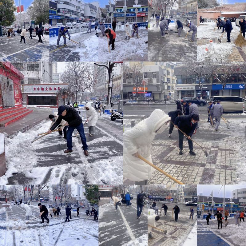 早上8點左右,許多黨員同志就提前到崗,自發(fā)組成了若干個掃雪大軍,各自負(fù)責(zé)不同區(qū)域的掃雪工作。大家頂著寒風(fēng),拿著鐵鍬、掃帚和雪鏟,爭著鏟、搶著掃,配合默契、齊心協(xié)力快速清理著地面厚厚的積雪。只見鐵鍬飛舞、落地有聲,掃帚擺動、殘雪盡除,緊接著手端融雪劑的同志立即撒布開來,一個個忙碌的身影在皚皚白雪中構(gòu)成了一道特殊的風(fēng)景線,引得路人聲聲贊嘆。面對這場極端天氣,海云公司黨員干部積極發(fā)揮黨員模范作用,以實際行動為維護(hù)城市環(huán)境貢獻(xiàn)一份力量。