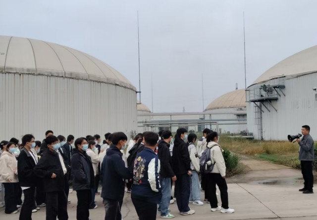在國新公司相關(guān)負(fù)責(zé)人陪同下,師生們系統(tǒng)參觀了中控室、沼氣脫硫系統(tǒng)、厭氧發(fā)酵裝置、預(yù)處理車間、餐廚處理車間及沼液膜濃縮車間等關(guān)鍵工藝環(huán)節(jié)。針對學(xué)生的學(xué)科背景,講解人員聚焦智能化管控系統(tǒng)、環(huán)保處理工藝及機(jī)電設(shè)備的運(yùn)行原理等內(nèi)容進(jìn)行了深入講解,使同學(xué)們在真實(shí)的產(chǎn)業(yè)場景中,直觀感受到理論知識與工程實(shí)踐的深度融合,進(jìn)一步激發(fā)了專業(yè)研習(xí)熱情與職業(yè)方向認(rèn)同。