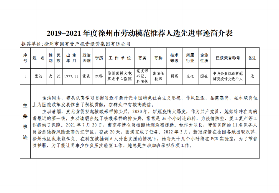 根據(jù)《關(guān)于做好2019-2021年度徐州市勞動(dòng)模范推薦評(píng)選工作的通知》精神和市總工會(huì)要求,為體現(xiàn)公開(kāi)、公平、公正原則,廣泛聽(tīng)取群眾意見(jiàn),接受群眾監(jiān)督,現(xiàn)將我單位推薦人選予以公示。