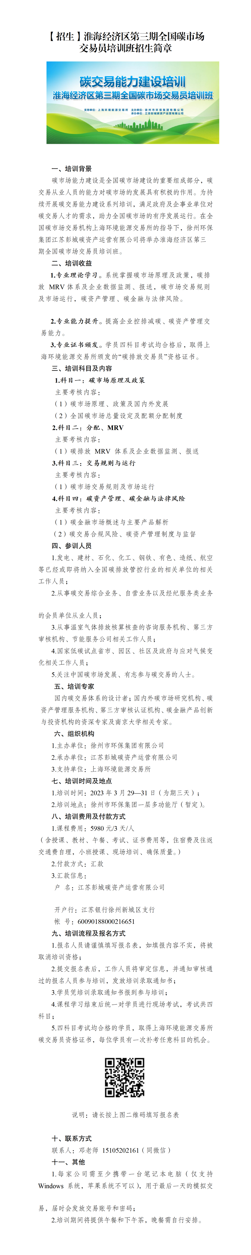 【招生】淮海經(jīng)濟(jì)區(qū)第三期全國(guó)碳市場(chǎng)交易員培訓(xùn)班招生簡(jiǎn)章