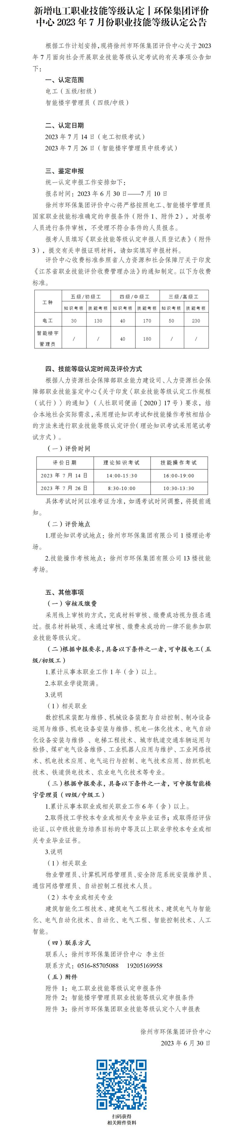 新增電工職業(yè)技能等級認(rèn)定 | 環(huán)保集團(tuán)評價中心2023年7月份職業(yè)技能等級認(rèn)定公告