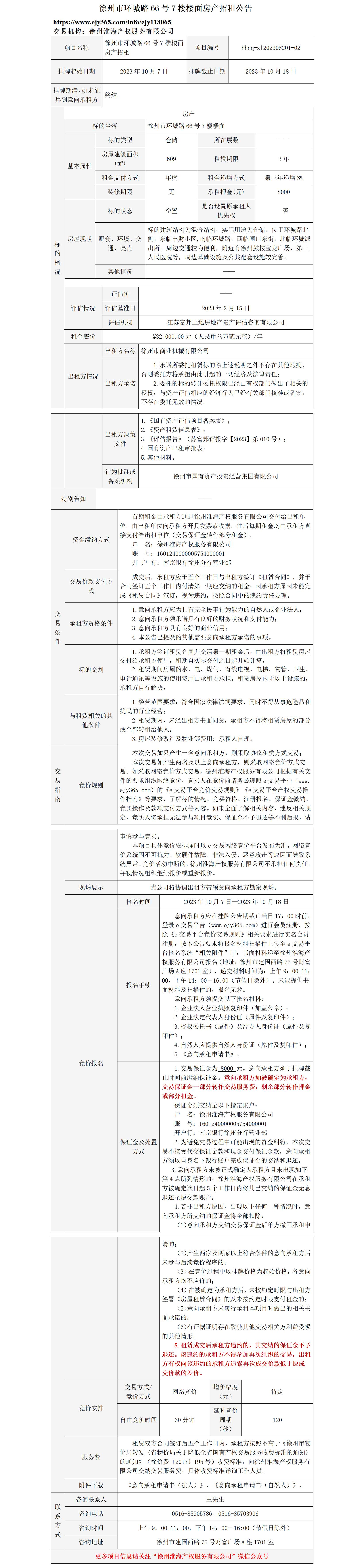 徐州市環(huán)城路66號(hào)7樓樓面房產(chǎn)招租公告