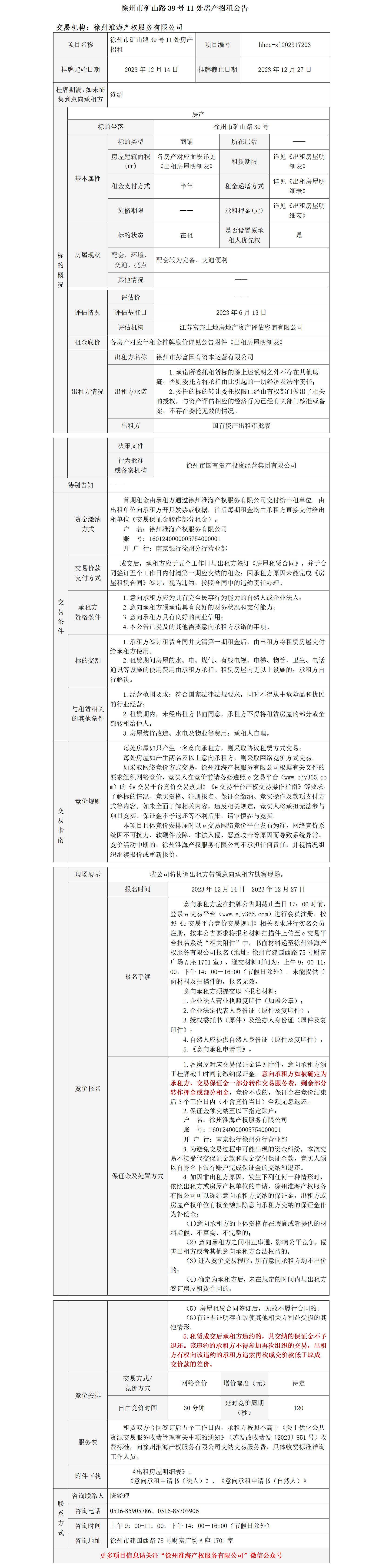徐州市礦山路23號(hào)西商鋪招租公告