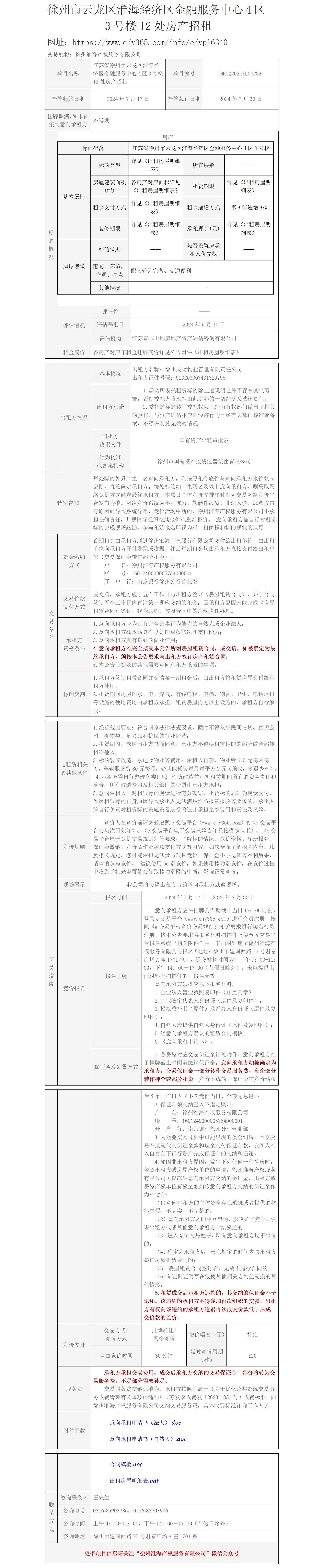 徐州市云龍區(qū)淮海經(jīng)濟區(qū)金融服務(wù)中心4區(qū)3號樓12處房產(chǎn)招租公告