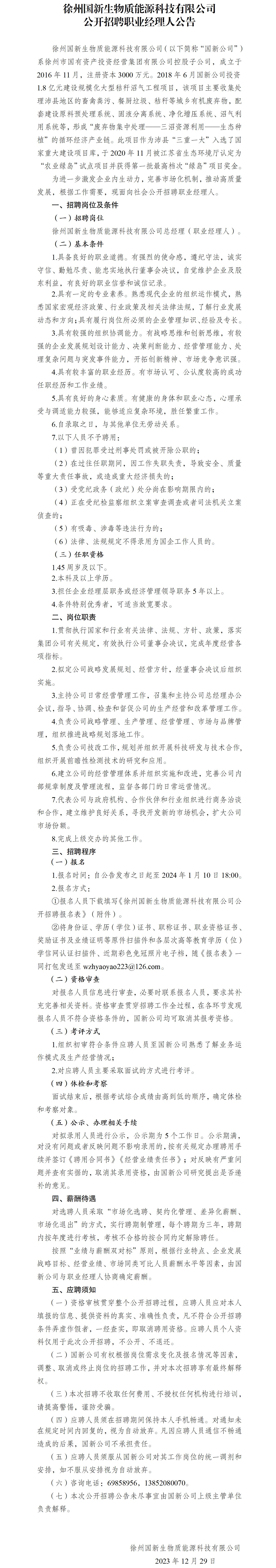 徐州國(guó)新生物質(zhì)能源科技有限公司公開(kāi)招聘職業(yè)經(jīng)理人公告