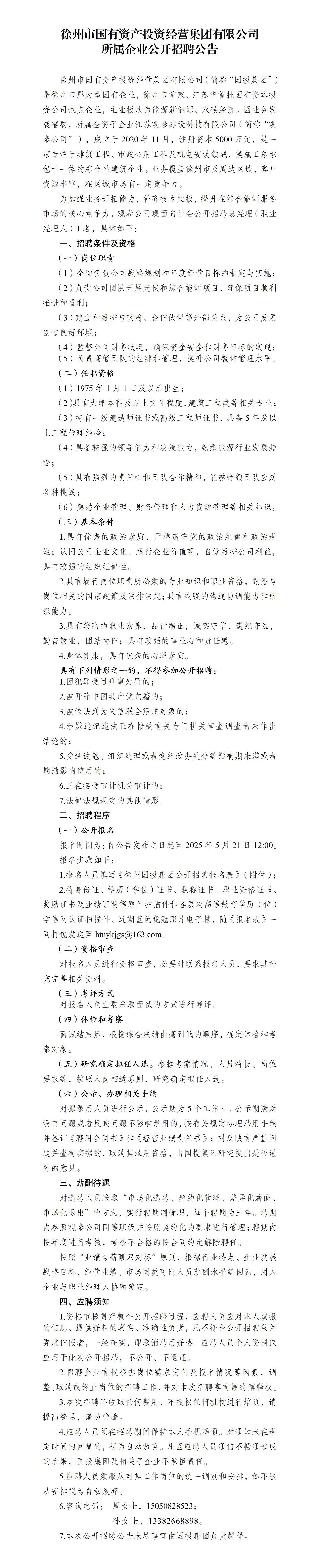 徐州市國有資產(chǎn)投資經(jīng)營集團(tuán)有限公司公開招聘公告