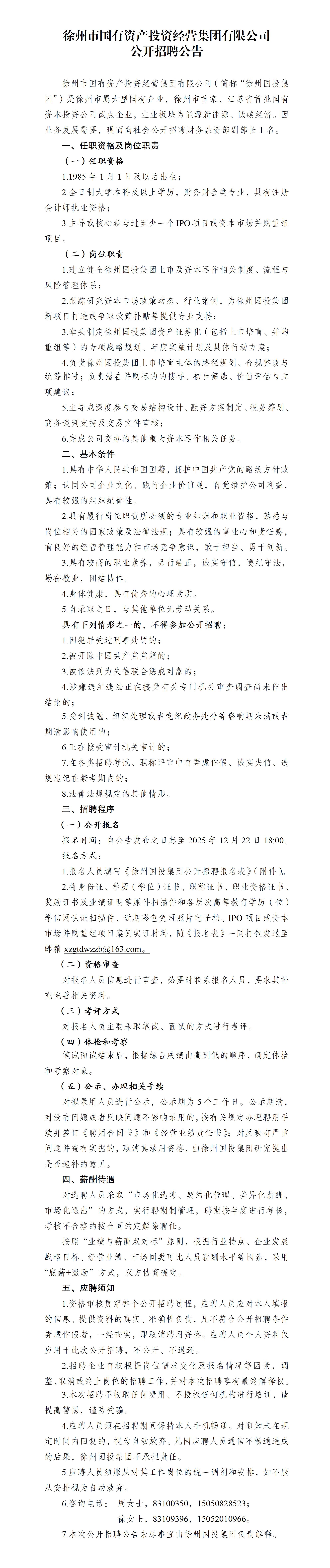 徐州市國有資產(chǎn)投資經(jīng)營集團有限公司公開招聘公告