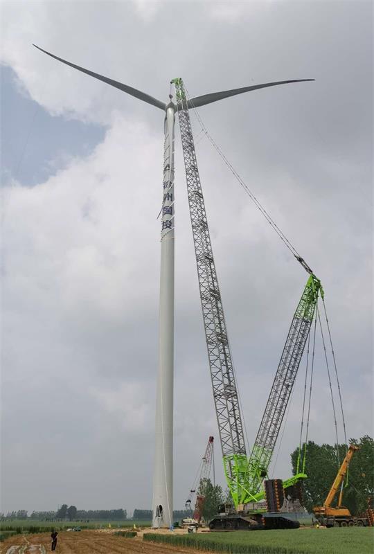 在吊裝作業(yè)過程中,國湖公司及各參建單位通力配合、密切協(xié)作、無縫對(duì)接,全力克服場地空間小、勞動(dòng)強(qiáng)度大、設(shè)備運(yùn)輸難、現(xiàn)場風(fēng)速大等多種困難,嚴(yán)格按照風(fēng)機(jī)吊裝的規(guī)范及工藝要求,有序完成吊車荷載試驗(yàn),塔筒、機(jī)艙、葉輪組裝對(duì)接工作,經(jīng)專業(yè)力學(xué)驗(yàn)收,確保各項(xiàng)安全指標(biāo)合格后,葉輪高空吊裝作業(yè)一次成功。