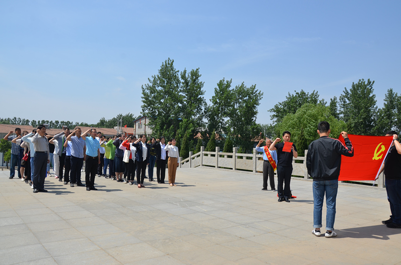 活動當天,集團公司機關(guān)黨支部還組織黨員前往沛縣烈士陵園開展了主題黨日活動。在雄偉莊嚴的烈士紀念碑前,全體人員莊嚴肅立,向革命烈士默哀致禮,并向烈士紀念碑敬獻花圈。表達對革命烈士的敬仰和深切緬懷之情。在莊昱的領(lǐng)誓下,大家面對黨旗、面對烈士紀念碑重溫了入黨誓詞。