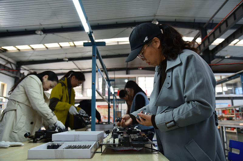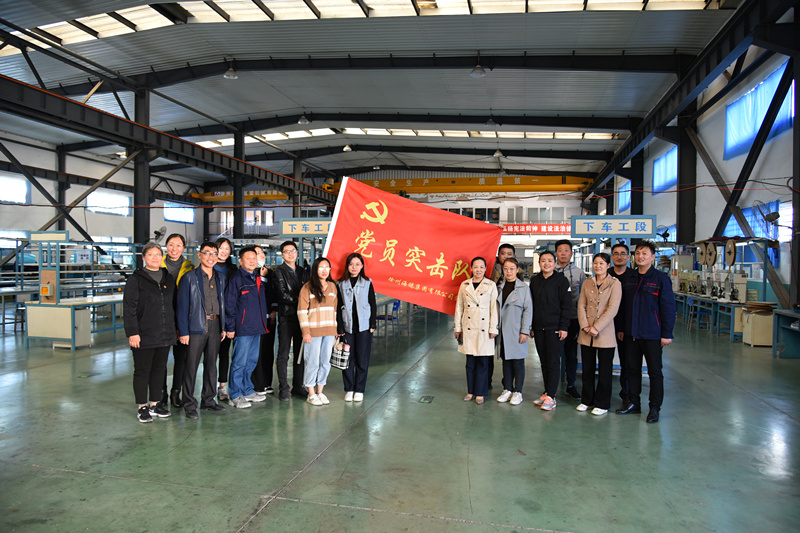 活動中,黨員同志們首先參觀了車間和各個生產(chǎn)線,認真聆聽新亞科技副總經(jīng)理代文全為大家講解公司產(chǎn)品、生產(chǎn)流程和工藝等情況,了解新亞科技主要產(chǎn)品,傾聽關(guān)于“千瘡百孔”操作板、自制測試臺等生產(chǎn)小故事,感受新亞科技自強不息、迎難而上的攻關(guān)精神。隨后,突擊隊員們分成兩隊,男同志們在新亞科技董事長謝珉的帶領(lǐng)下組裝貨架,女同志們在新亞科技總經(jīng)理周佩的帶領(lǐng)下參與工作流程,車間里氣氛熱烈,大家邊問邊學(xué)邊做,遇到貨架組裝不平、膠帶纏繞過松、保險絲按插不到位等小問題,就在技術(shù)能手的幫助下調(diào)整改進,通過不斷總結(jié)經(jīng)驗,突擊隊員們逐步從生疏到上手,最終圓滿完成工作任務(wù),內(nèi)心充滿勞動的喜悅。