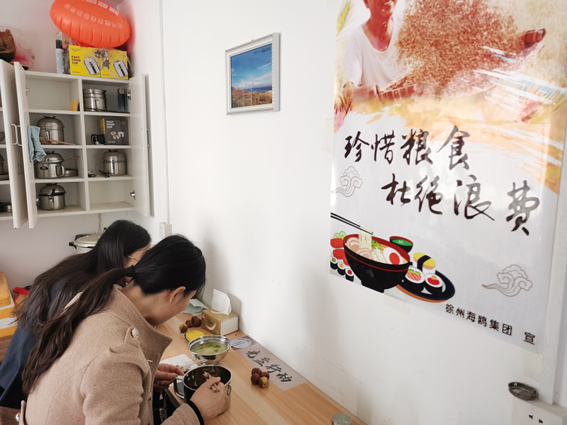 除了加大宣傳外,海鷗集團(tuán)自創(chuàng)了一套“暗藏玄機(jī)”的“鷗”范用餐,精細(xì)化引導(dǎo)節(jié)約。一是限量分份。取餐限制數(shù)量,如每人一塊紅燒肉、五只蝦、一個(gè)蘋果等,能限量的盡可限量;提供小份量,一個(gè)紅薯切成幾塊,煎餅烙饃一切為二,方便取食入口、又避免量大浪費(fèi)、更豐富飲食、有益健康,一舉多得。二是一人一盒。海鷗食堂為每名職工提供一個(gè)固定的不銹鋼飯盒,首先省去一次性筷子、餐具等資源,其次自己使用、自己刷洗等用餐流程,讓大家按需取餐,不易浪費(fèi),再者,要排隊(duì)刷洗餐具,自然加快速度,從而節(jié)約用水。三是食堂廚師用小鍋分次炒菜,根據(jù)當(dāng)天用餐情況,一小鍋一小鍋出,小鍋菜既保證味道可口,又避免大量剩菜。