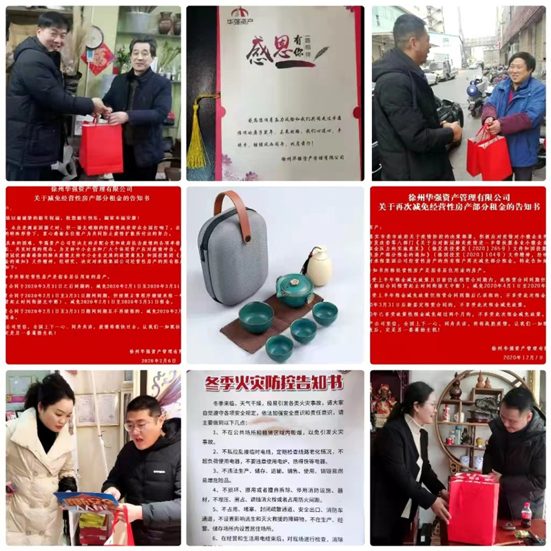 2020年12月23日至12月25日,華強(qiáng)資產(chǎn)公司開展新年客戶答謝活動(dòng),公司資產(chǎn)部全體租賃專員前往各自管轄房產(chǎn),為租戶送上新年禮物,感謝租戶在疫情困難時(shí)期對(duì)公司工作的大力支持。