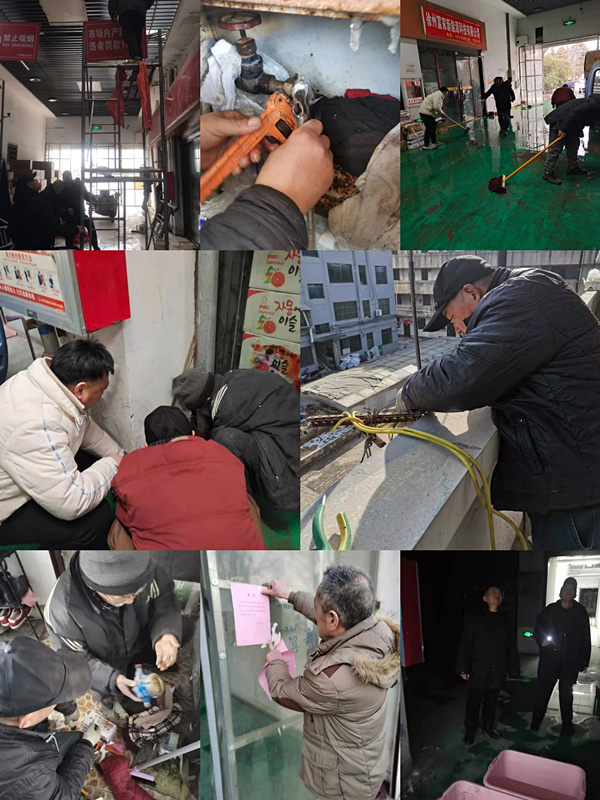 盡管市場已提前做好各項管線保溫措施,同時多次下發(fā)通知提醒業(yè)戶注意管線防寒保暖。但是在1月6日至11日極寒天氣下,還是出現(xiàn)了眾多管線凍結(jié)堵塞,水表爆裂等情況。市場服務(wù)熱線電話不斷,報修單呈數(shù)倍增長。商貿(mào)公司黨支部迅速啟動應(yīng)急預(yù)案,從支部書記到普通黨員全員加入搶修隊伍,確保爆裂管線第一時間得到搶修,業(yè)主報修二小時內(nèi)得到維修。黨員隊伍和資產(chǎn)管理部全體同志,頂著嚴寒加快搶修進度。在滴水成冰的寒冬里,他們團結(jié)協(xié)作、爭分奪秒,與嚴寒抗戰(zhàn)、與時間賽跑,高質(zhì)量地完成了搶修任務(wù),受到業(yè)主廣泛好評。