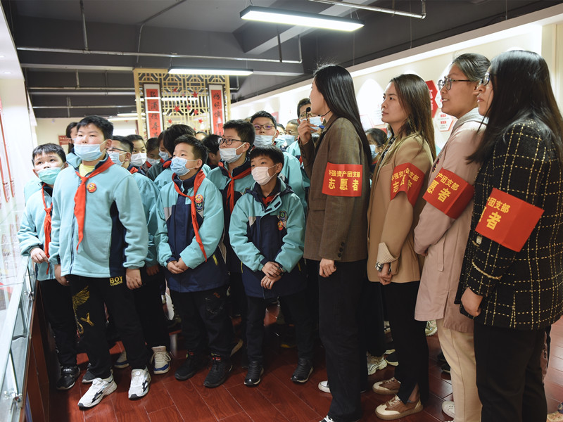4月19日,解放路小學(xué)百名學(xué)生來到蘇悅黨支部紅色藏品微展館參觀學(xué)習(xí),華強(qiáng)團(tuán)支部組織團(tuán)員青年作為志愿者維護(hù)現(xiàn)場秩序,全程守護(hù)學(xué)生們的安全,在接受黨史學(xué)習(xí)教育的同時,確保此次活動順利開展。