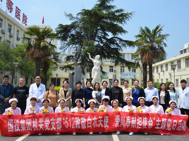5月12日當(dāng)天,與集團(tuán)公司機(jī)關(guān)黨支部一同出發(fā)的還有國泰投資黨總支,他們來到澳洋華安康復(fù)醫(yī)院、中煤五建職工醫(yī)院開展“黨建促發(fā)展 情暖護(hù)士節(jié)”主題黨日活動,慰問堅守在一線的護(hù)理人員。