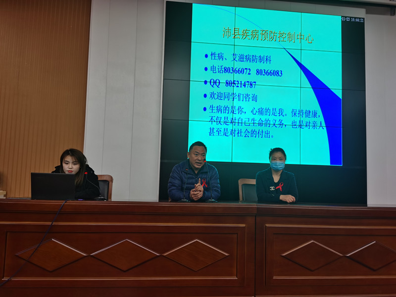 此次活動邀請了沛縣疾病控制中心性病艾滋病防治科于光亮科長,為大家現(xiàn)場進行青少年預防艾滋病專題講座。于光亮結(jié)合自己多年的實踐經(jīng)驗,通過大量精確的數(shù)字、案例以及直觀的圖表,從艾滋病感染人群分布、傳播途徑、預防措施、咨詢檢測、政府政策等方面作了詳細講解,普及了我國艾滋病相關(guān)法律法規(guī)、應該去哪里檢測、哪些人群需要進行艾滋病病毒抗體檢測等知識,強調(diào)目前尚無預防艾滋病的有效疫苗,提出“責任+行動”是抵御艾滋病最好的防范措施。講座中設有有獎問答環(huán)節(jié),學生積極踴躍舉手回答,現(xiàn)場氛圍輕松愉悅。課后向師生發(fā)放了艾滋病防治宣傳知識材料。