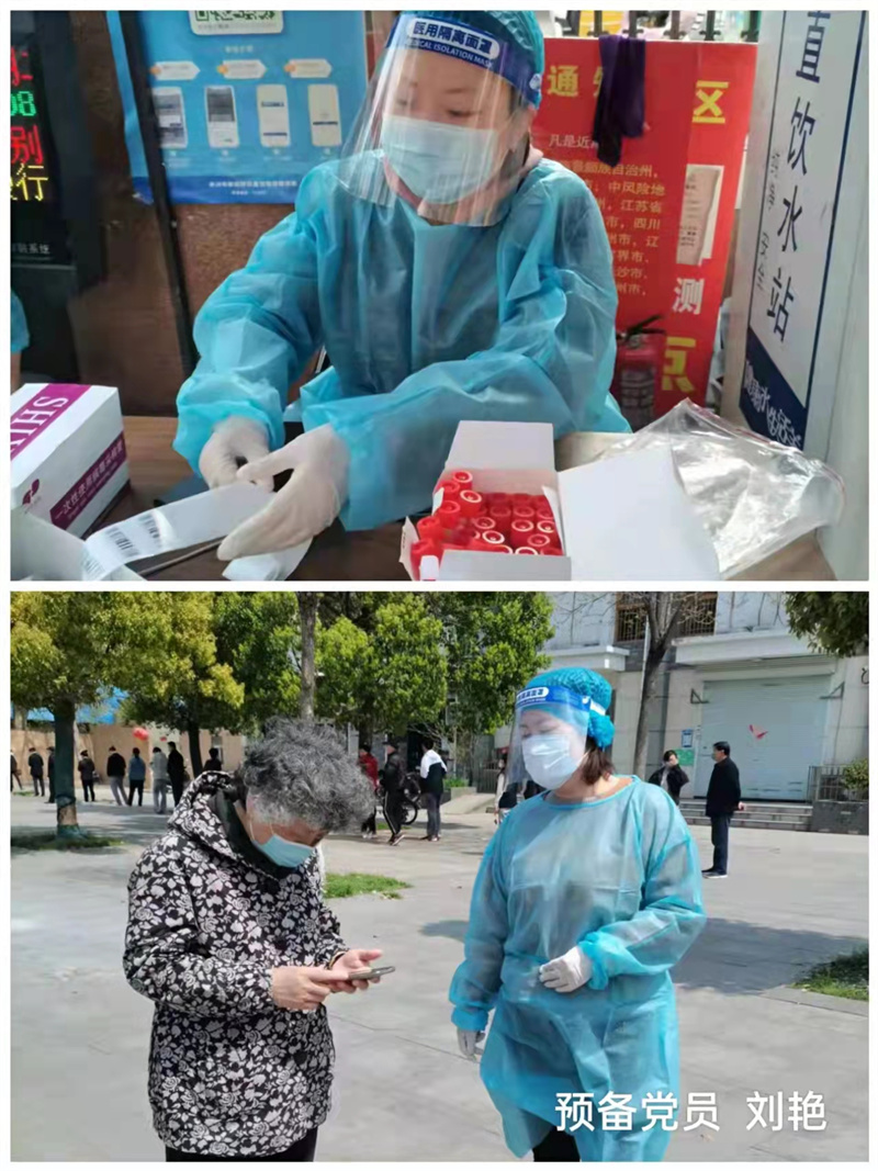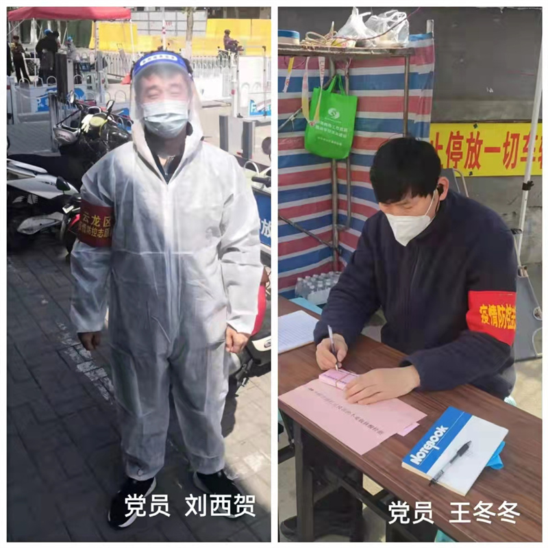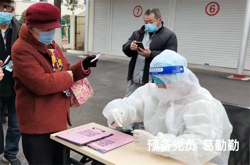 鼓樓區(qū)防疫告急之時,支部居住在鼓樓區(qū)的6名同志又及時沖鋒到一線,預(yù)備黨員劉艷、毋世新,職工群眾李冬、毋世忠,還有黃碼轉(zhuǎn)綠碼的黨員苗艷、黎偉,全部第一時間迅速參與到華康社區(qū)、王場社區(qū)、琵琶社區(qū)、九里社區(qū)、紅杉樹社區(qū)等各個社區(qū)的志愿者服務(wù)中,排查登記、信息錄入、秩序引導(dǎo)、測溫驗碼……共同保衛(wèi)鼓樓!預(yù)備黨員劉艷在華康社區(qū)志愿服務(wù),每天從早上出門到傍晚歸家,有時忙起來一天都顧不上吃一頓飯,她用無私奉獻(xiàn)的精神在這場沒有硝煙的戰(zhàn)“疫”中經(jīng)受住了考驗。疫情就是命令,防控就是責(zé)任,居住鼓樓區(qū)的6名同志用實際行動踐行了“國投人”在疫情防控斗爭中的承諾!