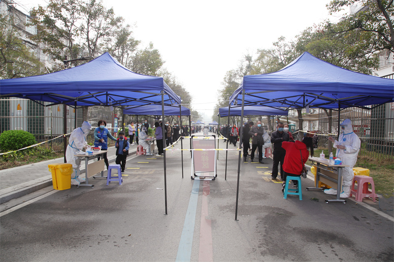 采樣人員匆匆吃了點(diǎn)午飯后,11點(diǎn)半便來到了各自的采樣點(diǎn),做好了奮戰(zhàn)到深夜的準(zhǔn)備。中午,院黨委書記、院長張心海及班子成員先后來到各個采樣點(diǎn)進(jìn)行督導(dǎo),現(xiàn)場解決問題。晚上7點(diǎn)多,院領(lǐng)導(dǎo)又一次來到各個采樣點(diǎn)進(jìn)行慰問。
