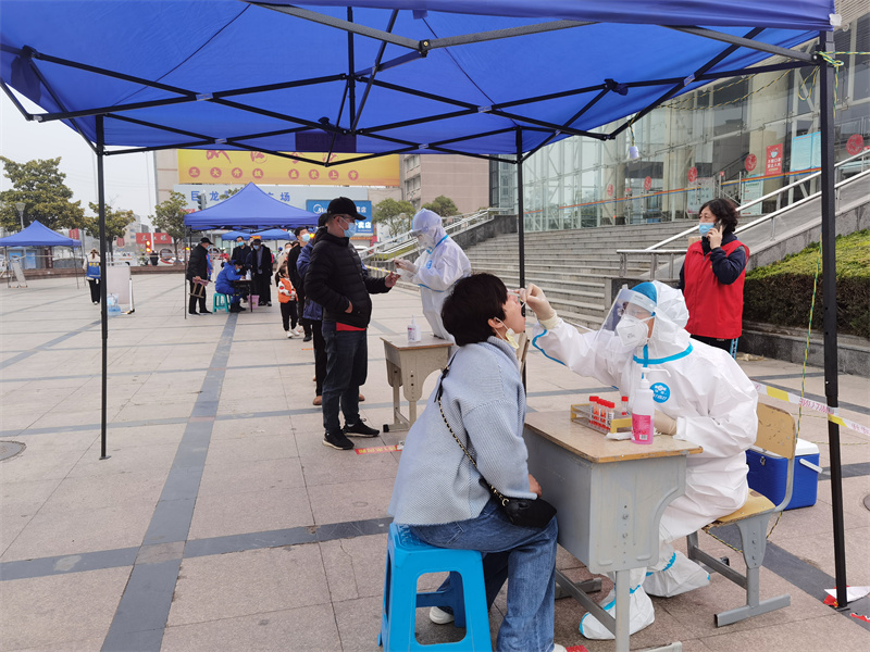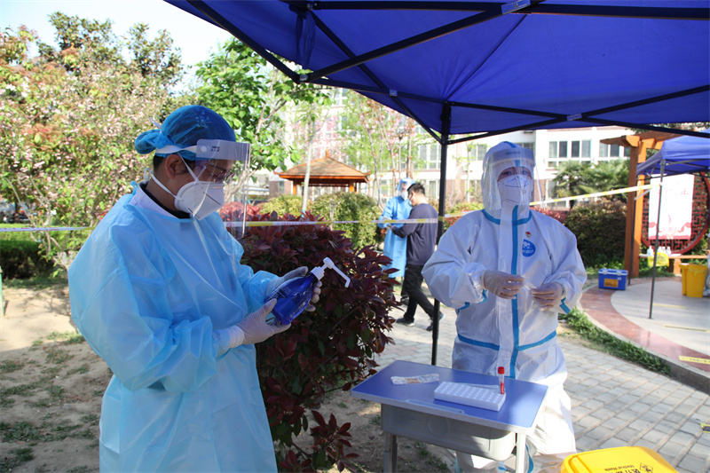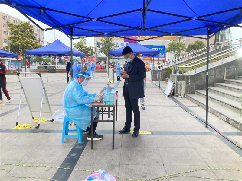 副院長張文權(quán)下班后沒有回家,來到所負(fù)責(zé)的采樣點(diǎn),帶頭穿上防護(hù)服當(dāng)起了志愿者,為采樣居民進(jìn)行信息登記。