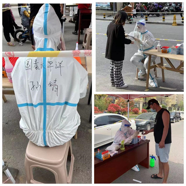 家是最小國,國是千萬家。在疫情防控當下,有這樣一對夫妻,他們不計“小家”得失,以“大家”為重,夫妻雙雙下沉到抗疫一線,她叫孫婧,是徐州國泰太平洋酒店的一名財務人員,“黨有召喚,我有行動”這一直是孫婧這位新黨員的堅守。當徐州的疫情襲來之際,孫婧愛人是第一批“黃碼”人員,待黃碼轉(zhuǎn)為綠碼后,他們第一時間下沉到社區(qū),將孩子托付給家中老人照看后,便毅然奔赴到抗疫一線。與社區(qū)工作者入戶逐一排查,幫助社區(qū)宣傳疫情防控政策,防疫常識等。即使云龍區(qū)綠碼暫停核酸檢測,夫妻二人依然積極地到重點區(qū)域參與核酸檢測的工作,與社區(qū)工作者入戶逐一排查,兩個人互相鼓勵,做彼此堅強的后盾。疫情無情,人間有愛,疫情打亂了夫妻小家的節(jié)奏,卻讓黨性在這個時刻愈加熠熠生輝。