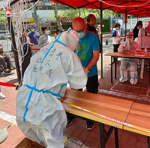 他第一時(shí)間報(bào)名參加子房街道王杰社區(qū)志愿者,4月2日,接到任務(wù)負(fù)責(zé)“黃碼”人員的核酸檢測信息登記工作。起初心里略過一絲緊張,擔(dān)心自己也變成“黃碼”,但轉(zhuǎn)念想到自己是一名黨員,黨員就是旗幟,黨徽就是鏡子,要發(fā)揚(yáng)出“越是艱險(xiǎn)越向前”的精神。于是他毅然穿上防護(hù)服走上工作崗位,在專業(yè)人員的指導(dǎo)下,很快勝任了工作。以后的每一天他都堅(jiān)守在“黃碼”檢測信息登記的崗位上。