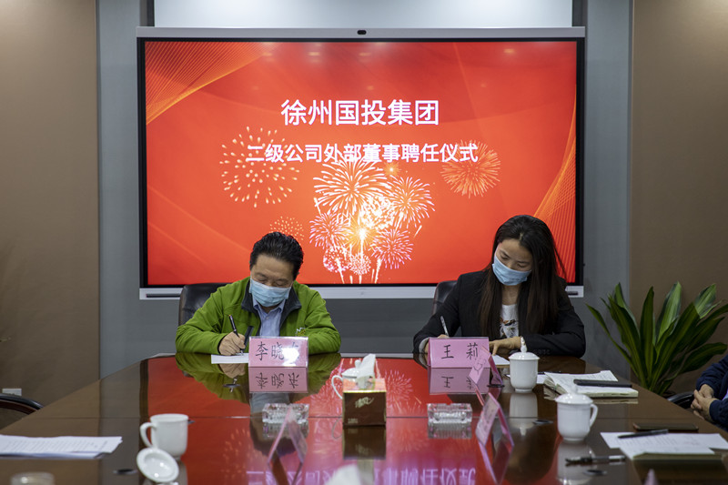 4月21日,徐州國投集團舉行二級公司外部董事聘任儀式,集團公司黨委書記、董事長李曉東,黨委副書記、總經理姜巖,黨委委員、副總經理梁棟出席聘任儀式,相關部室負責人和二級公司外部董事參加儀式。
