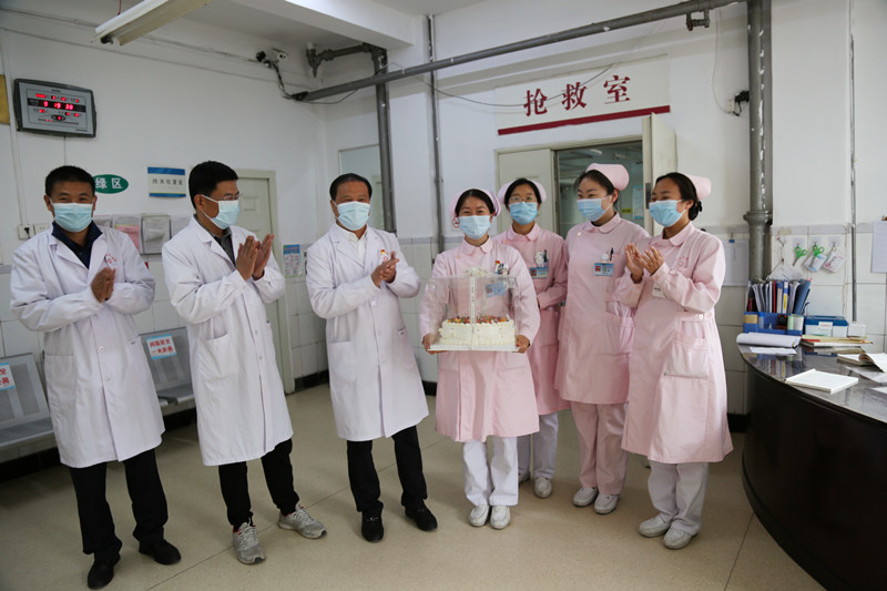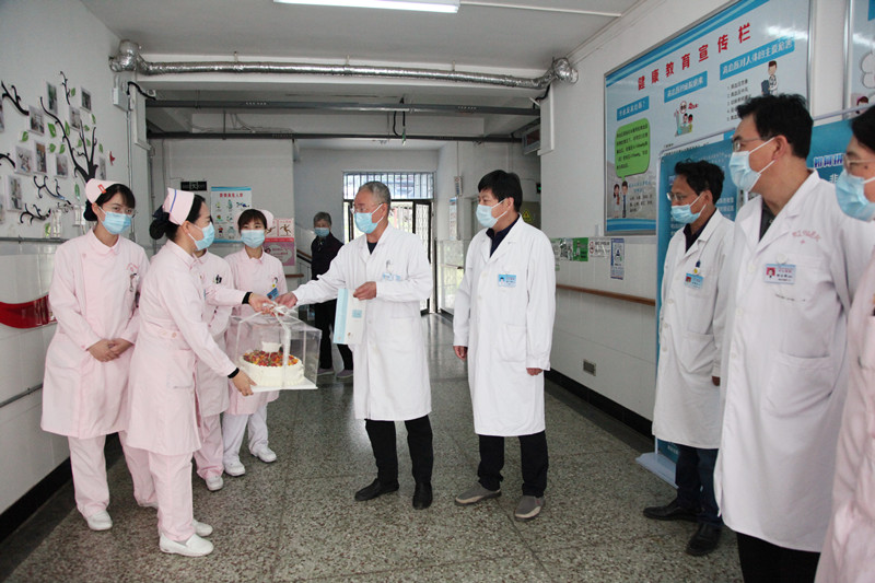 5月12日上午,院領(lǐng)導(dǎo)分成兩組,分別在黨委書記孫守訪、院長(zhǎng)張心海帶領(lǐng)下,帶著定制的節(jié)日蛋糕來(lái)到臨床一線,慰問(wèn)堅(jiān)守崗位的護(hù)理姐妹們。每到一處病區(qū),院領(lǐng)導(dǎo)向她們送上誠(chéng)摯的節(jié)日祝福,感謝她們對(duì)醫(yī)院護(hù)理工作的付出,叮囑她們?cè)谧龊霉ぷ鞯耐瑫r(shí),也要做好自身防護(hù),保重身體健康。護(hù)士們特別開(kāi)心,紛紛感謝醫(yī)院的關(guān)愛(ài),表示將遵守南丁格爾誓言,一如既往獻(xiàn)身護(hù)理工作,為患者減輕痛苦、促進(jìn)康復(fù),為醫(yī)院發(fā)展貢獻(xiàn)力量。