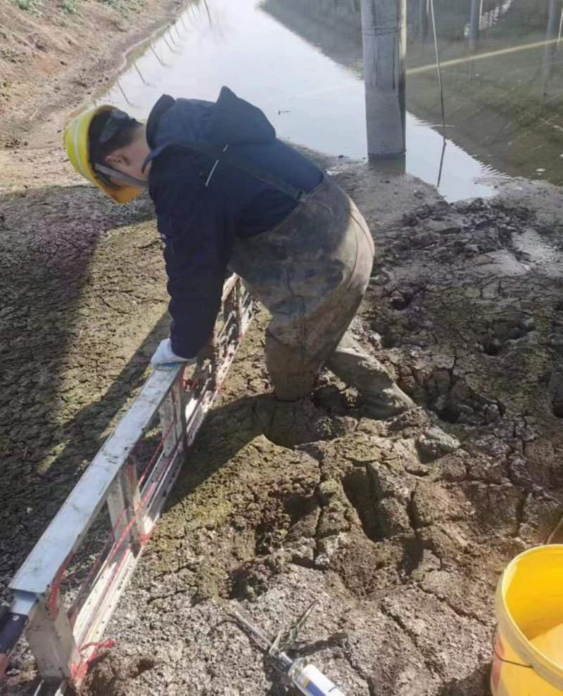 冬日的阜南縣格外寒冷,車輪壓過地面殘留的積雪發(fā)出咯吱咯吱的聲響,路兩旁的枯枝在風(fēng)中搖晃。阜南電站是“農(nóng)光互補”光伏項目,裝機容量100MW,由王化鎮(zhèn)、于集鄉(xiāng)、地城鎮(zhèn)三個地塊組成,劉忠保在這幾條熟悉的路線上不知道往返了多少趟。下車后,冷風(fēng)吹得劉忠保打了個寒顫,裹緊了身上的工作服,匆匆換上了水褲,背著裝備走向了光伏區(qū)。由于特殊的地理環(huán)境,阜南電站部分光伏區(qū)遍布著淤泥,踩在半人之高的淤泥中每走一步就會留下一個深深的泥坑。等到故障處理結(jié)束,劉忠保和同事已經(jīng)在零下的水溫里泡了兩個小時,上岸后,他不停揉搓已經(jīng)凍得麻木的手。