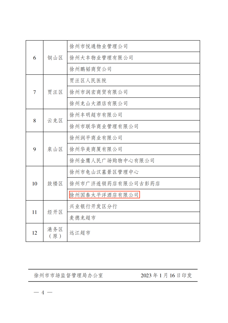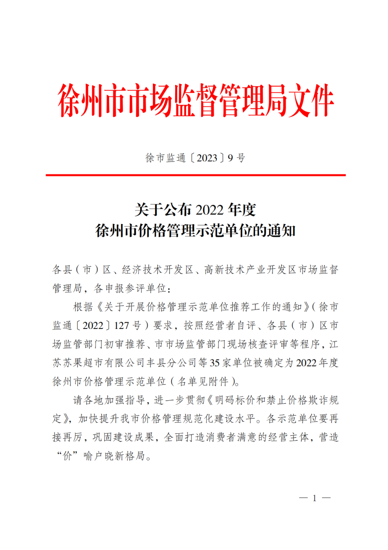 為深入推進價格誠信建設(shè),不斷規(guī)范和引導(dǎo)市場價格行為,培育誠實守信的市場主體。近日,經(jīng)過經(jīng)營者自評、各縣(市)區(qū)市場監(jiān)管部門初審?fù)扑]、徐州市市場監(jiān)管部門現(xiàn)場核查評審等一系列程序,國泰太平洋酒店榮獲徐州市市場監(jiān)督管理局“2022年度徐州市價格管理示范單位”榮譽稱號。