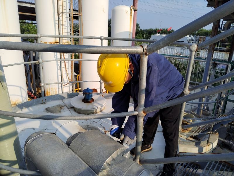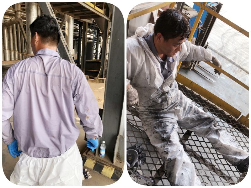 危廢處置中心焚燒車間的員工們正對(duì)焚燒爐進(jìn)行檢修,此時(shí)爐內(nèi)的溫度臨近60℃,汗水從額頭、臂膀、后背不斷滴落。