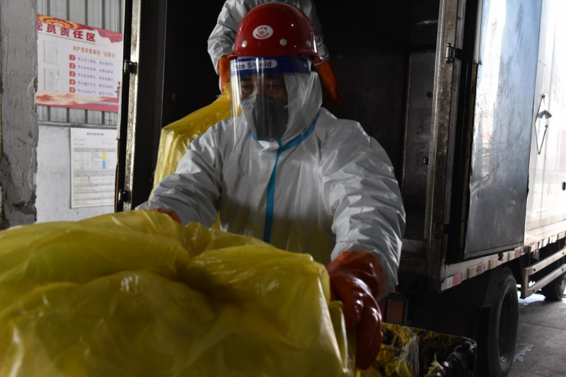 清運(yùn)車隊(duì)的員工,在逼近40℃的高溫下,仍要穿上密不透風(fēng)的防護(hù)服轉(zhuǎn)運(yùn)醫(yī)療廢棄物,當(dāng)一輪工作結(jié)束時(shí),脫下防護(hù)服,里面的衣物往往已經(jīng)全部濕透。