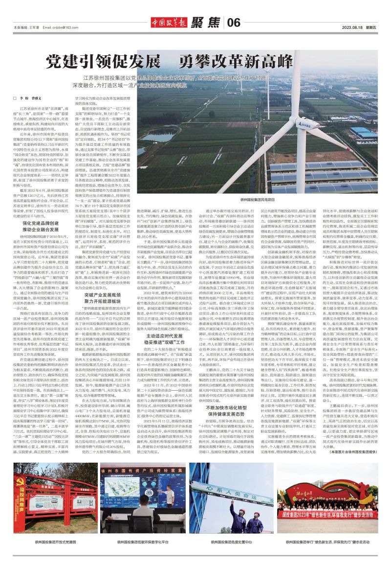 王鵬表示,黨的二十大關(guān)于綠色低碳發(fā)展的重要決策部署與徐州國(guó)投集團(tuán)的主責(zé)主業(yè)高度契合,徐州國(guó)投集團(tuán)將充分把握機(jī)遇,在徐州經(jīng)濟(jì)社會(huì)發(fā)展大局中找定位、謀發(fā)展、提地位,為全面推進(jìn)中國(guó)式現(xiàn)代化徐州新實(shí)踐貢獻(xiàn)徐州國(guó)投力量。