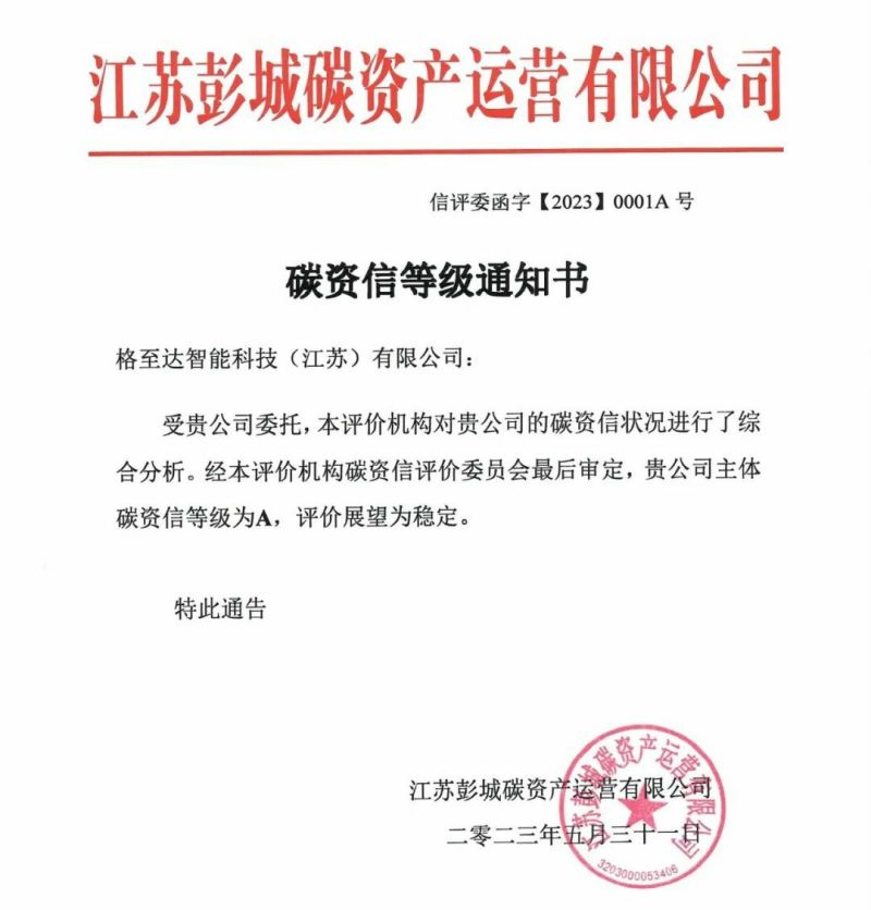 12月8日,在江蘇省新型能源體系示范啟動(dòng)暨徐州市綠色低碳能源產(chǎn)業(yè)發(fā)展推進(jìn)大會(huì)上,江蘇銀行徐州分行、格雷博智能動(dòng)力、徐州國(guó)投集團(tuán)共同簽署了格至達(dá)綠色貸款項(xiàng)目,簽署完走下臺(tái)的格至達(dá)智能科技(江蘇)有限公司副總經(jīng)理鄧昇,迫不及待地向記者展示了全市首張企業(yè)碳資信等級(jí)證書(shū),“0001A”號(hào)!