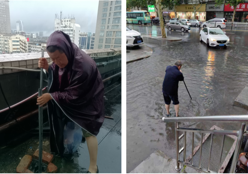 大雨導致旭鵬公司、國聯(lián)科公司、中山路50號及戲馬臺商廈等房產屋面和庫房積水嚴重,屋面水位急速上升,帶來嚴重安全隱患。輕資產人員立即啟動防汛應急預案,在風雨中緊急增加水泵排水、疏通下水道、清理各處積水,全力保障了公司設施設備安全,避免業(yè)主財物受損。