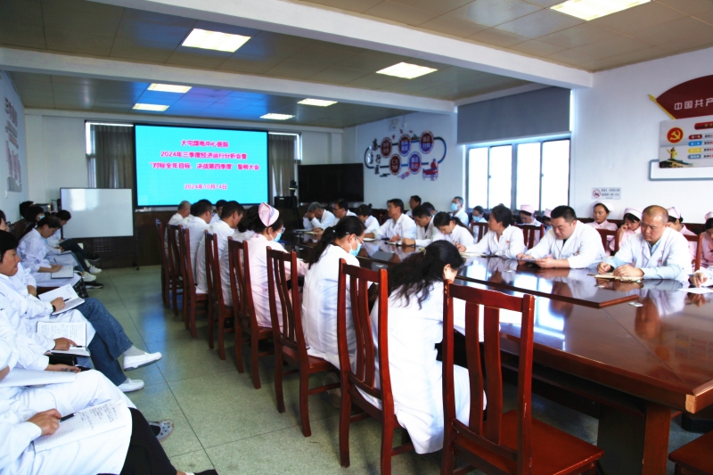 10月14日下午,大屯煤電公司中心醫(yī)院召開(kāi)2024年三季度經(jīng)濟(jì)運(yùn)行分析會(huì)暨“對(duì)標(biāo)全年目標(biāo),決戰(zhàn)第四季度”誓師大會(huì),總結(jié)回顧1-9月份工作情況,分析經(jīng)濟(jì)運(yùn)行情況,安排部署四季度重點(diǎn)工作任務(wù)。會(huì)議由院黨委副書(shū)記、院長(zhǎng)張心海主持。院領(lǐng)導(dǎo)班子及護(hù)士長(zhǎng)以上管理人員參加會(huì)議。