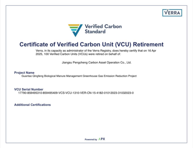 江蘇彭城碳資產(chǎn)運(yùn)營有限公司已通過購買國際自愿減排(VCS):館陶縣慶豐生物科技有限公司糞便管理溫室氣體減排項目,用于活動能耗和包括參會者們在活動中產(chǎn)生的二氧化碳當(dāng)量溫室氣體排放,實(shí)現(xiàn)活動碳中和。