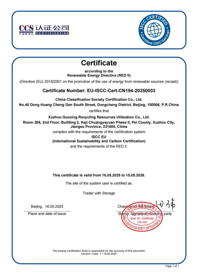 首戰(zhàn)告捷,開辟生物質(zhì)能源貿(mào)易新賽道。作為集團公司能源板塊的第三戰(zhàn)略賽道——生物質(zhì)能源,國興公司積極響應國家“雙碳”戰(zhàn)略,全力布局生物質(zhì)能源開發(fā)與應用。今年5月,公司成功通過歐盟ISCC工業(yè)級混合油(UCO)認證,成為符合國際可持續(xù)生物能源原料標準的核心供應商。此次千噸級訂單的落地,不僅驗證了公司在原料品質(zhì)、供應鏈管理及市場響應能力上的優(yōu)勢,更彰顯了其在生物質(zhì)能源貿(mào)易領域的核心競爭力。