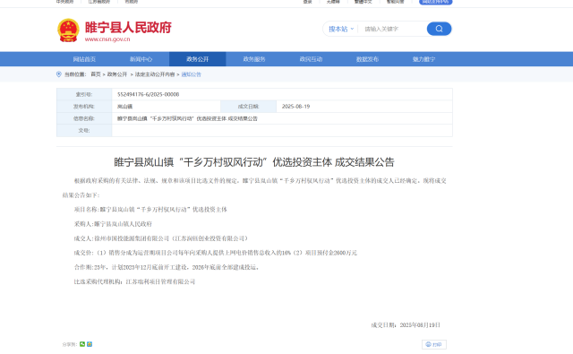 此次中標項目位于睢寧縣嵐山鎮(zhèn)萬莊村,規(guī)劃總裝機容量18.75MW,布置3臺單機容量為6.25MW的風電機組,總投資約1.1億元,計劃2025年底前開工建設,2026年全部建成投運。項目建成后,在25年運營期內,每年按照約定的收入比例與村鎮(zhèn)共享收益,最大程度保障村鎮(zhèn)利益,對于壯大當?shù)卮寮w經(jīng)濟、助力鄉(xiāng)村振興、促進農(nóng)村能源綠色低碳轉型具有重要意義。下一步,國投能源集團將持續(xù)錨定國家戰(zhàn)略方向,緊扣地方發(fā)展需求,聚焦民生改善目標,不斷探索助力鄉(xiāng)村振興的新思路、新辦法、新模式,將資源優(yōu)勢轉化為發(fā)展勝勢,為全面推進鄉(xiāng)村振興戰(zhàn)略貢獻力量。