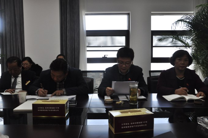 2017年12月6日上午,徐州國(guó)泰國(guó)有資本投資有限公司黨總支召開黨的十九大精神學(xué)習(xí)擴(kuò)大會(huì)議,黨總支書記韋大森主持,全體黨員、中層以上非黨員干部參加。