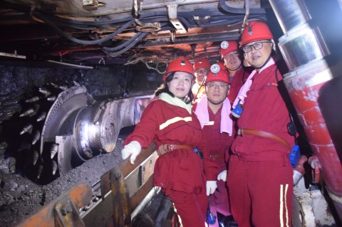 當天上午,參加體驗活動的同志們來到張雙樓煤礦,在礦方熱情接待和細心指導下,全體穿上工作服、膠靴,佩戴好礦燈、自救器,共同前往礦副井上口,現(xiàn)場學習了下井安全常識。隨后,同志們排著整齊的隊伍走進副井罐籠深入井下750米,穿過井口大巷,然后乘坐-750米水平暗斜井猴車沿著下山20°坡度方向行駛近1000米,通過74102材料運輸巷道進入深度1000米的74102采煤工作面,與礦井一線職工零距離接觸。在采煤工作面,同志們真真切切看到了地下閃閃發(fā)光的煤炭,以及一張張汗流浹背的面龐,一個個生龍活虎的身影,實實在在聽到了設(shè)備運轉(zhuǎn)震耳欲聾的轟鳴聲。采煤工作面黑暗、悶熱、潮濕的工作環(huán)境,礦工兄弟們吃苦耐勞、團結(jié)協(xié)作、樂于奉獻的精神深深打動了現(xiàn)場每一位體驗同志,給大家的思想帶來了極大的震撼。