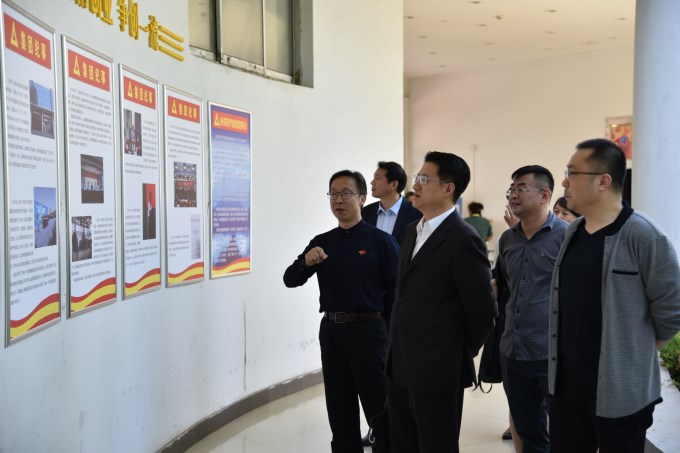 調(diào)研組首先觀看了海云電腦城、科創(chuàng)創(chuàng)業(yè)園、徐州古玩城、物華紡織品市場等集團公司授托資產(chǎn)室外宣傳展板。隨后觀看了“學習新時代”、“集團記事”、“華強黨建”、“分公司風采”、“文化長廊”等室內(nèi)展板,對華強資產(chǎn)公司濃厚的黨建及企業(yè)文化氛圍給予充分肯定。