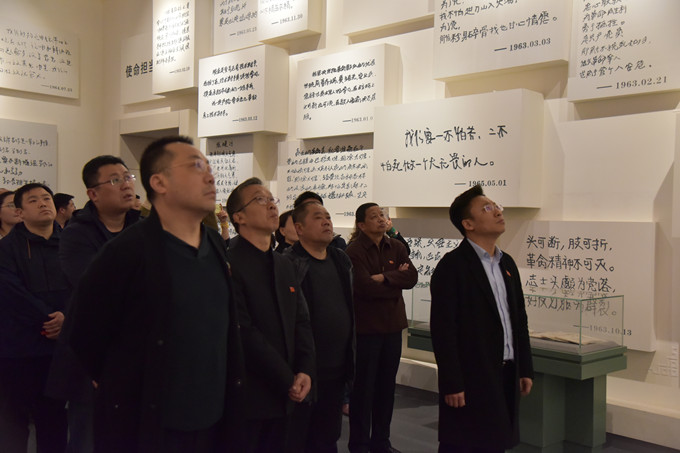 在王杰事跡陳列館和榮譽(yù)室,大家認(rèn)真聆聽并了解了王杰同志的成長(zhǎng)經(jīng)歷、先進(jìn)事跡及王杰班的光輝歷程。泛白的綠軍裝、生銹的工具、炸破的鋼筆殘片……厚厚的筆記本上寫著“在榮譽(yù)上不伸手、在待遇上不伸手、在物質(zhì)上不伸手”這簡(jiǎn)單的21個(gè)字,猶如一面鏡子照著每一個(gè)人,大家或低聲交流抒發(fā)感想,或駐足凝望久久陷入沉思。