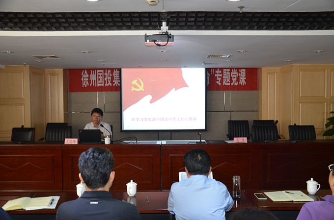 按照中央及省市委關(guān)于在“不忘初心、牢記使命”主題教育中認(rèn)真學(xué)習(xí)黨史、新中國史的要求,結(jié)合徐州國投集團(tuán)黨委“不忘初心、牢記使命”主題教育工作安排,9月23日下午,徐州國投集團(tuán)黨委邀請徐州市委黨校原副校長王國鋒作“學(xué)黨史、守初心、擔(dān)使命”專題講座。市委主題教育第12巡回指導(dǎo)組成員、云龍區(qū)市場監(jiān)督管理局組織人事科科長車際芳同志到會指導(dǎo),集團(tuán)公司領(lǐng)導(dǎo)班子成員、集團(tuán)本部助理以上管理人員及全體黨員,各直屬黨組織班子成員、黨務(wù)工作者和三級黨組織書記參加學(xué)習(xí)。講座由徐州國投集團(tuán)黨委副書記、紀(jì)委書記莊昱主持。