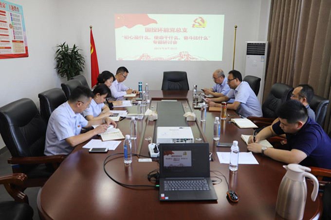 9月29日,國(guó)投環(huán)能黨總支召開專題學(xué)習(xí)研討會(huì)議,深入學(xué)習(xí)習(xí)近平總書記重要講話,圍繞“初心是什么、使命干什么、奮斗比什么”主題展開討論發(fā)言。國(guó)投環(huán)能黨總支書記孫雷主持會(huì)議,集團(tuán)第一巡回指導(dǎo)組組長(zhǎng)喬毅、國(guó)投環(huán)能黨總支全體成員參加會(huì)議。