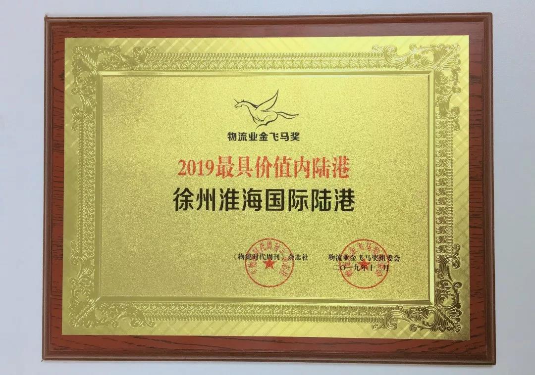 近期中國交通運(yùn)輸協(xié)會(huì)城市物流分會(huì)組織了“2019最具價(jià)值內(nèi)陸港”網(wǎng)上評(píng)選活動(dòng),經(jīng)過網(wǎng)上投票評(píng)選和線下綜合評(píng)估,徐州淮海國際陸港發(fā)展有限公司榮獲“2019最具價(jià)值內(nèi)陸港”物流業(yè)金飛馬獎(jiǎng)。