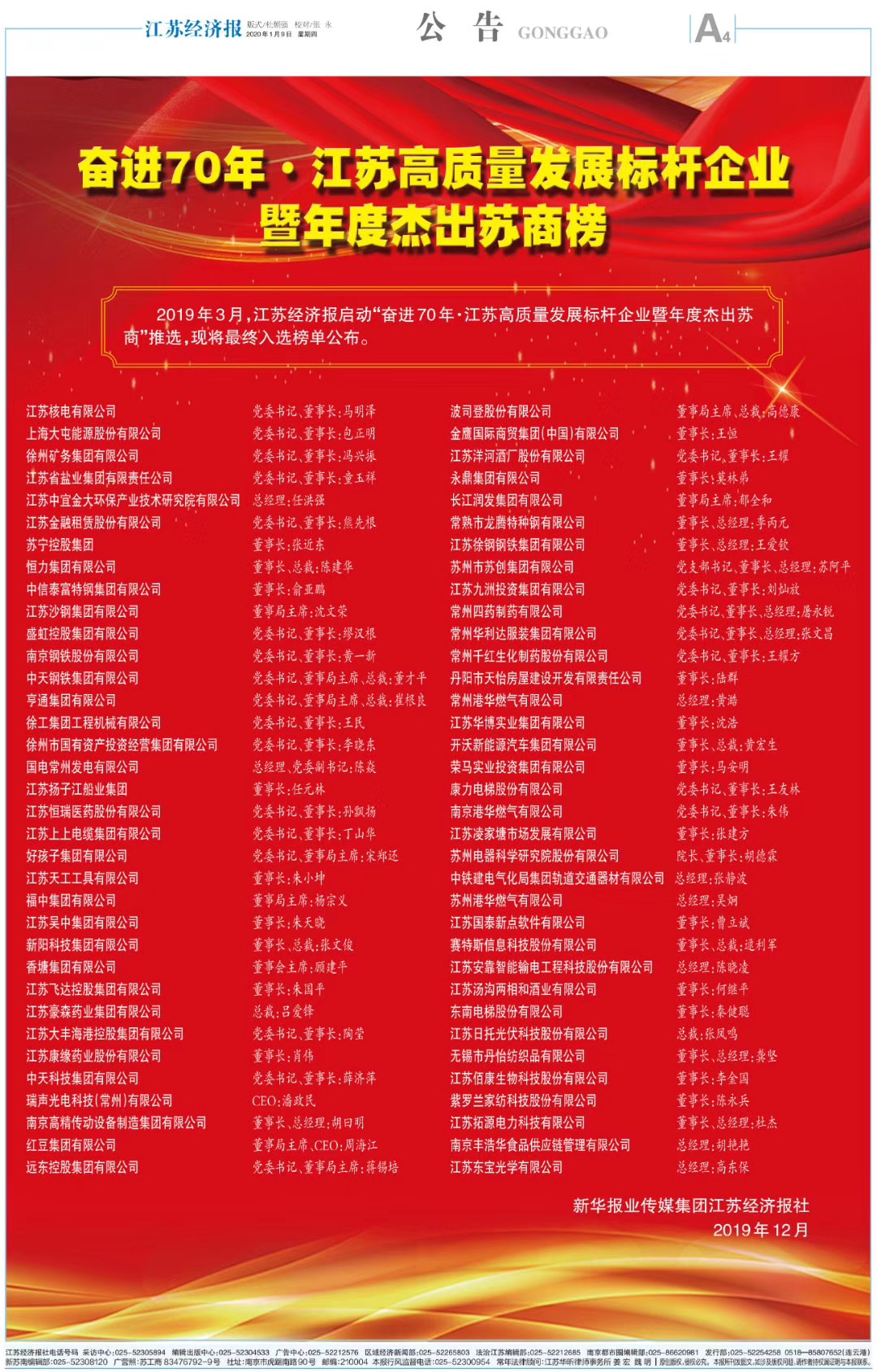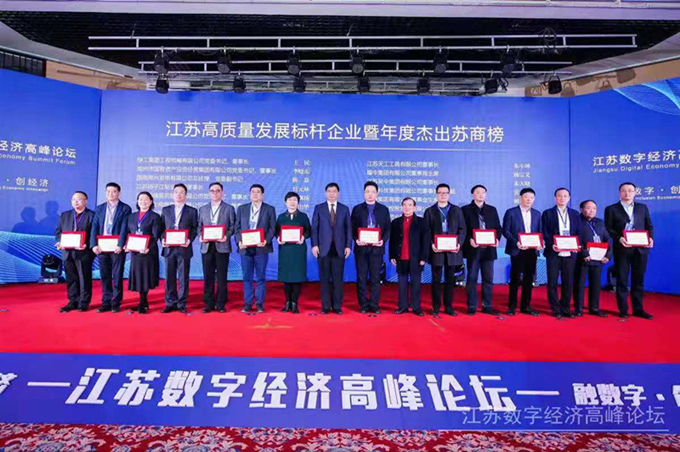1月9日,以“融數(shù)字 創(chuàng)經(jīng)濟(jì)”為主題的江蘇數(shù)字經(jīng)濟(jì)高峰論壇在南京舉行,國(guó)內(nèi)知名專家學(xué)者、省內(nèi)商業(yè)翹楚等近400人參加了這場(chǎng)“數(shù)字盛宴”?!皧^進(jìn)70年·江蘇高質(zhì)量發(fā)展標(biāo)桿企業(yè)年度杰出蘇商榜”也在論壇期間發(fā)布,徐州國(guó)投集團(tuán)獲評(píng)“江蘇高質(zhì)量發(fā)展標(biāo)桿企業(yè)”,徐州國(guó)投集團(tuán)黨委書記、董事長(zhǎng)李曉東被評(píng)為“慶祝新中國(guó)成立70周年·最受尊敬的杰出蘇商”。