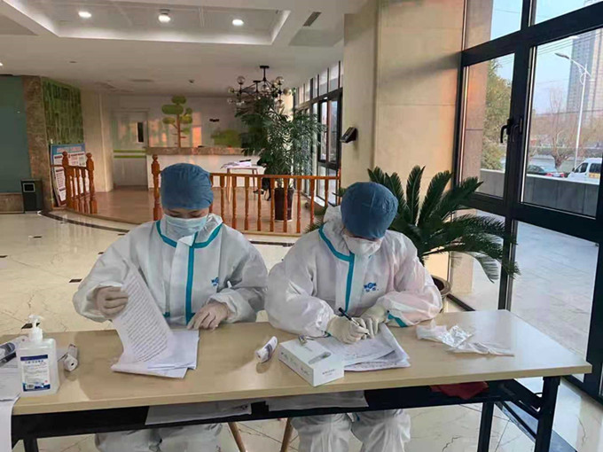 面對疫情不斷升級,酒店黨員干部主動擔當,及時采取有效的防疫措施。一是及時停止對外服務(wù),主動聯(lián)系定餐客戶在征得同意的情況下免費取消各類預(yù)定。二是全面加強停業(yè)期間的安保工作。對于滯留酒店的異地旅客,主動關(guān)心關(guān)懷,提供高品質(zhì)服務(wù)的同時,每日免費測量體溫,贈送口罩,最大程度保障住客的人身安全,排除潛在隱患。三是積極響應(yīng)號召,配合社區(qū)廣泛宣傳疫情防控知識。